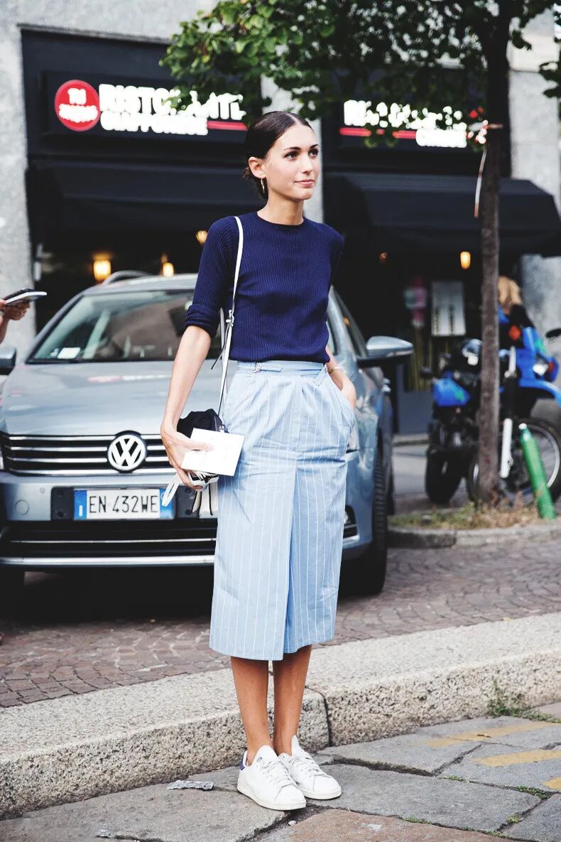 另外,强烈推荐宝妈们入一条这样的短款西装裤!浅绿色清新亮眼,宽松的裤腿舒适又自在,既透气还能遮住小肚子和大腿。