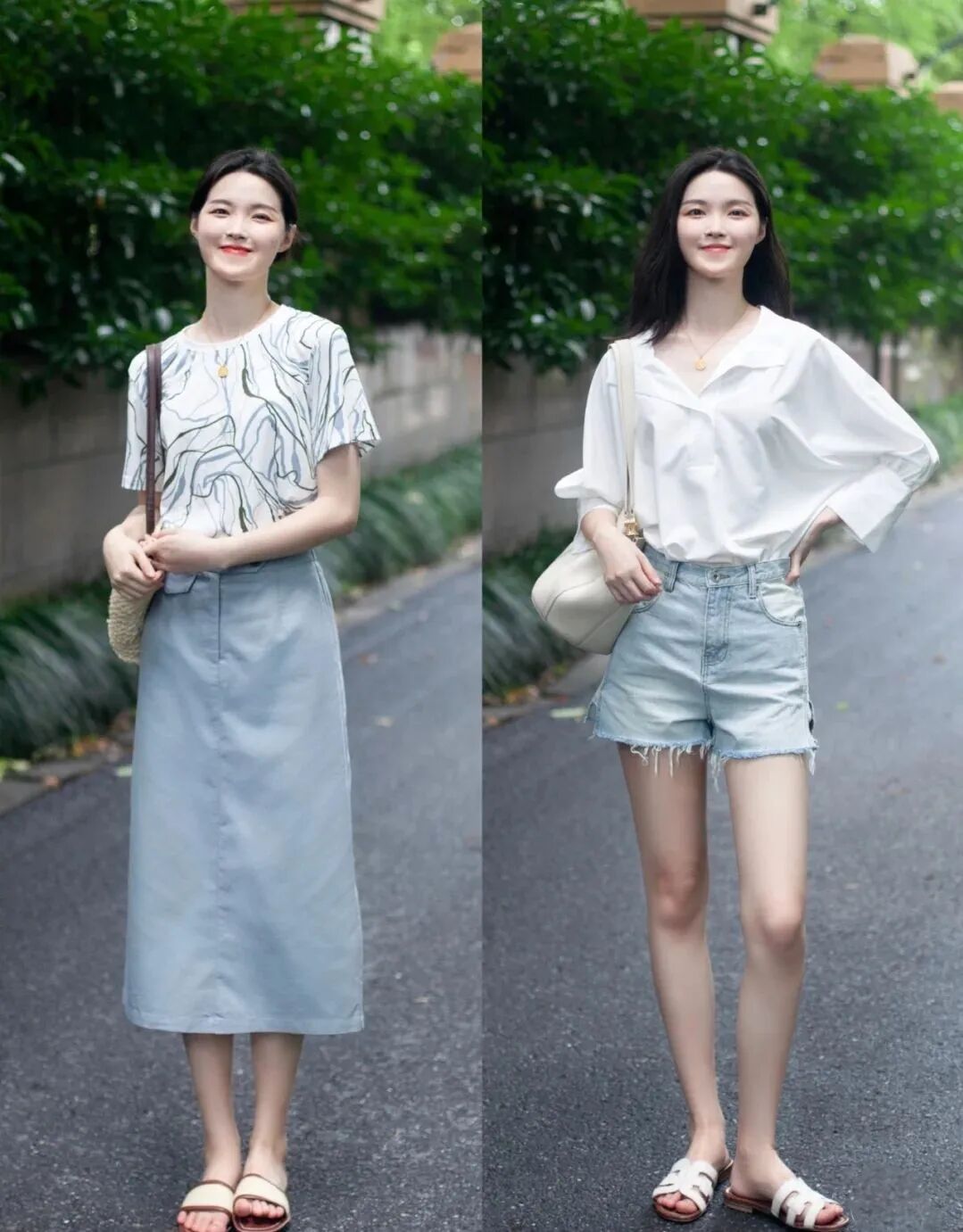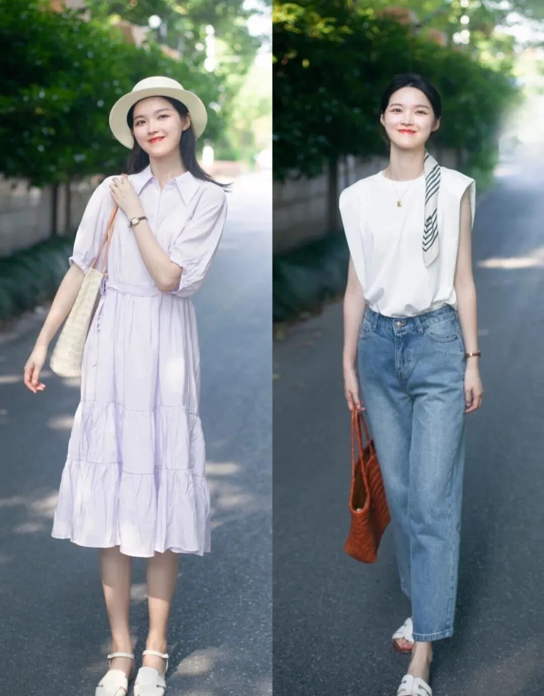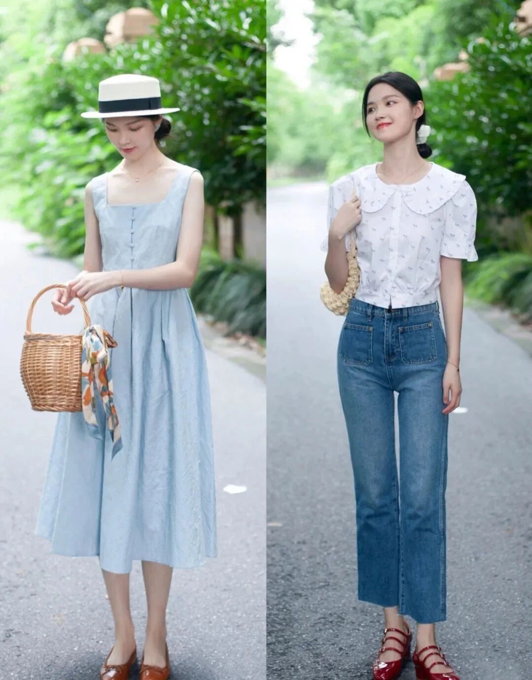 夏季简单与牛仔单品做搭配,少女感瞬间出来了。