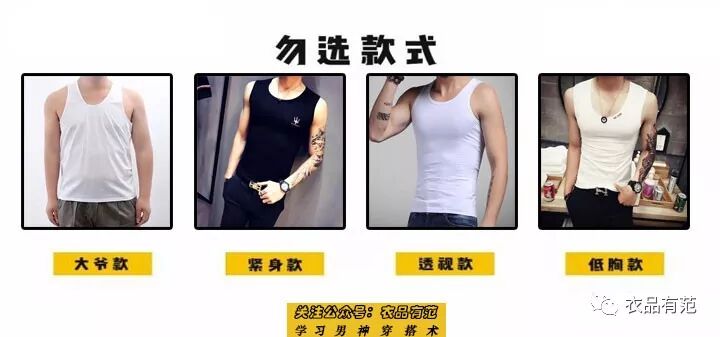 (校长)建议选择正常领口和袖口的背心,搭配可以和T恤混搭,不过正式场合一定不要穿背心