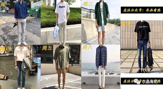 首先我们根据男生的上衣-裤子-鞋子-配饰依次介绍