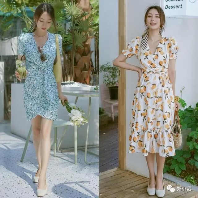 夏季可以选择更有清凉大方感的印花连衣裙,海洋般静谧清澈的蓝色印花,轻熟大女人的黑色波点,浪漫不张扬的橙色印花等都不错。面料上更加推荐雪纺或者冰丝等透气性好的面料,清透凉爽可以轻松打破当下的暑气感和闷热感。也可以通过设计上的小露肤,如v领、方领设计,都能小露出纤细精致的脖颈线条,让甜美可爱的印花裙又带有性感的小女人味道,简直就是30岁以上女性的减龄神器,真的很夏天呢。