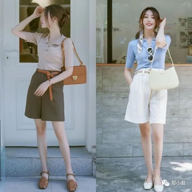 上衣可以选择温柔细腻的针织衫,如果喜欢极简风的基础简约,可以选择最基础的大地色,简单不容易出错,如米色针织衫搭配棕色大短裤,通过腰带,包包的配饰点缀和同色呼应,让简单的穿搭增色出彩不少。