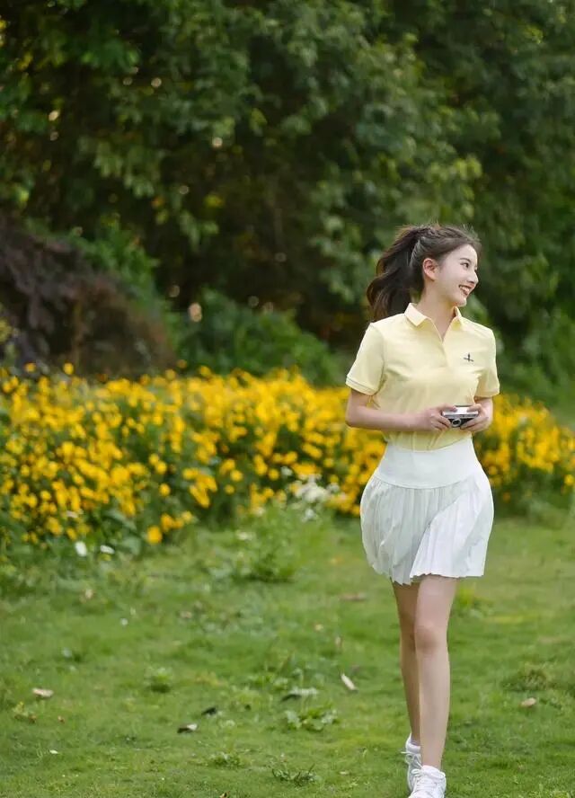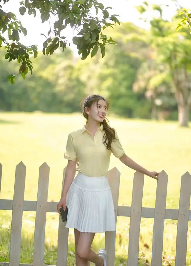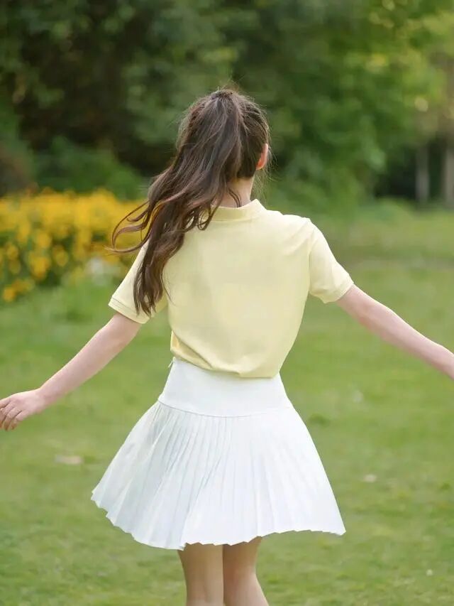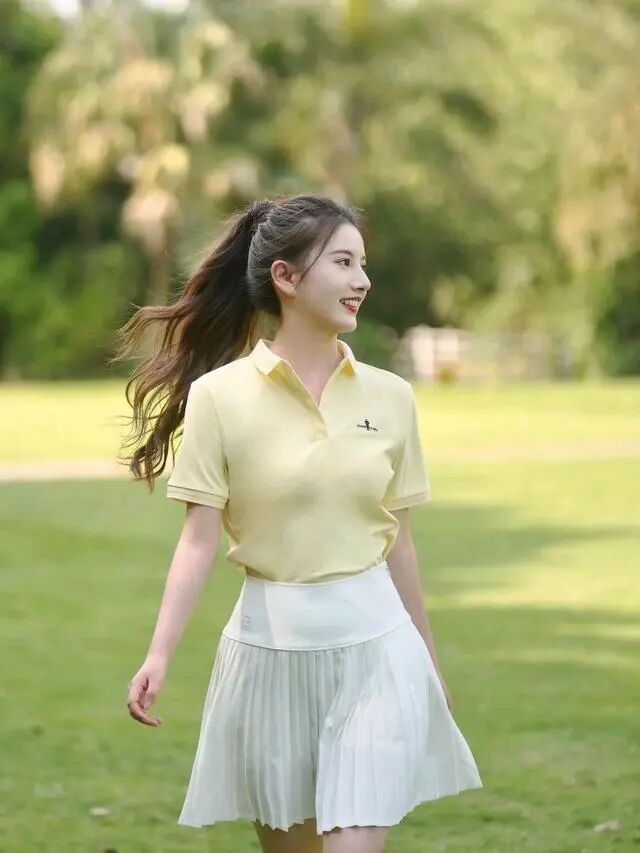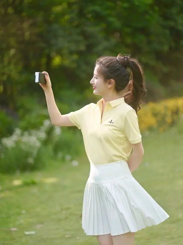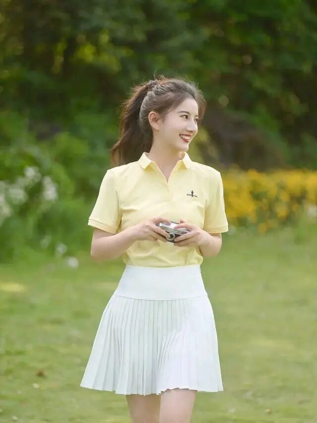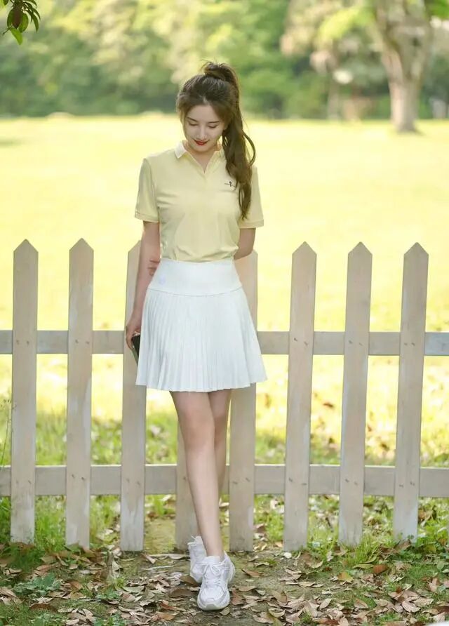 比如这款黄色体恤衫搭配白色百褶裙的搭配,既时尚又优雅。无论你想要展现休闲还是正式的一面,它都能轻松胜任。不仅如此,这种组合还非常百搭,可以驾驭各种风格的高跟鞋或者运动鞋,让你尽情发挥自己的个性。穿上这样一身清新甜美的装扮,无疑能够展现出清新甜美的一面。