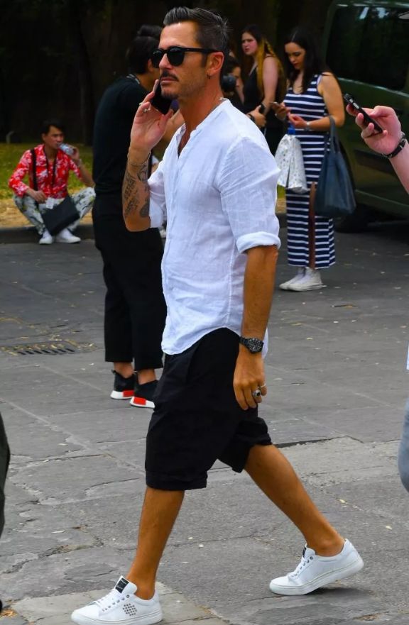 除了搭配长裤外,亚麻衬衫搭配短裤也是不错的选择,搭配短裤时,如果是五分裤,那么可以不将下摆束于腰间,oversize 的穿搭风格会更合适,七分的休闲裤,小编还是建议不要随意尝试穿搭。