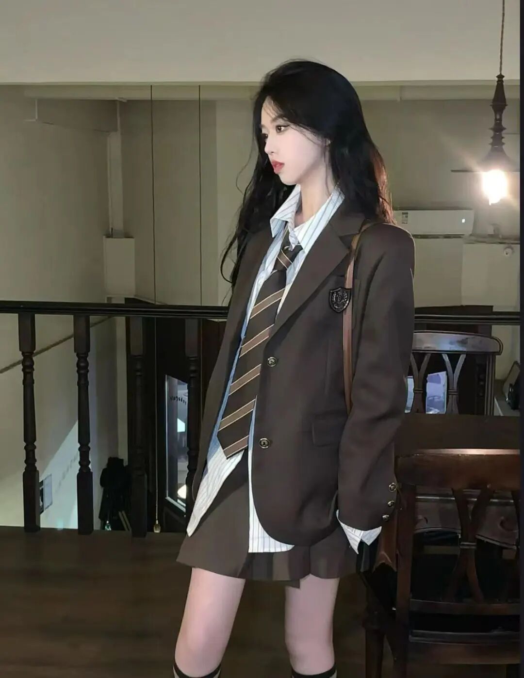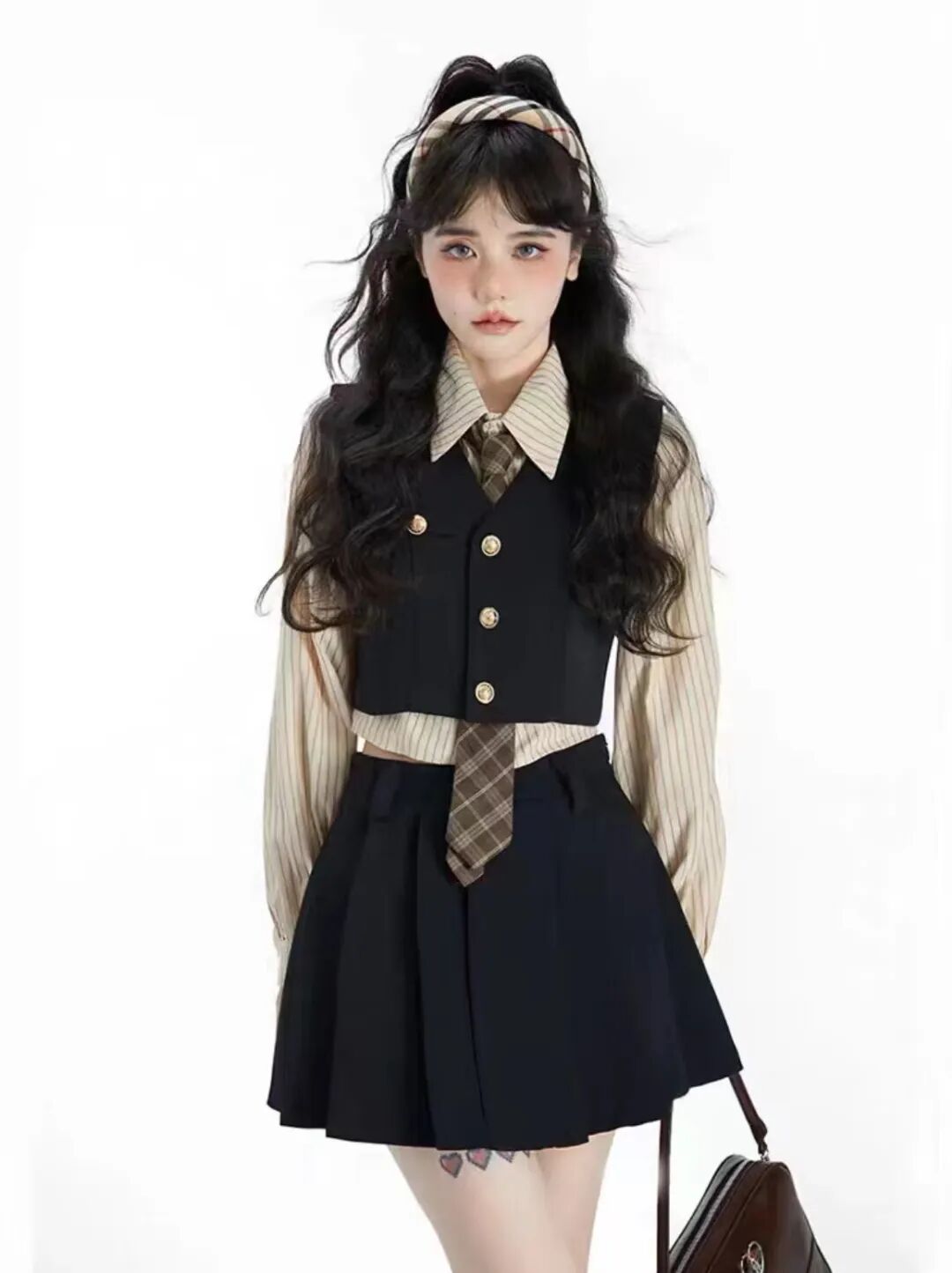 衬衫是学院风穿搭中常见的单品之一,学院风的内搭一般就是它了,最基础的就是白衬衫,也可选择条纹衬衫,再搭上和整体同色系的领带在外套的选择上可以选择针织马甲,学院风的西装外套,大衣,卫衣等.