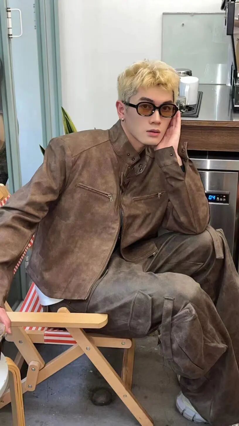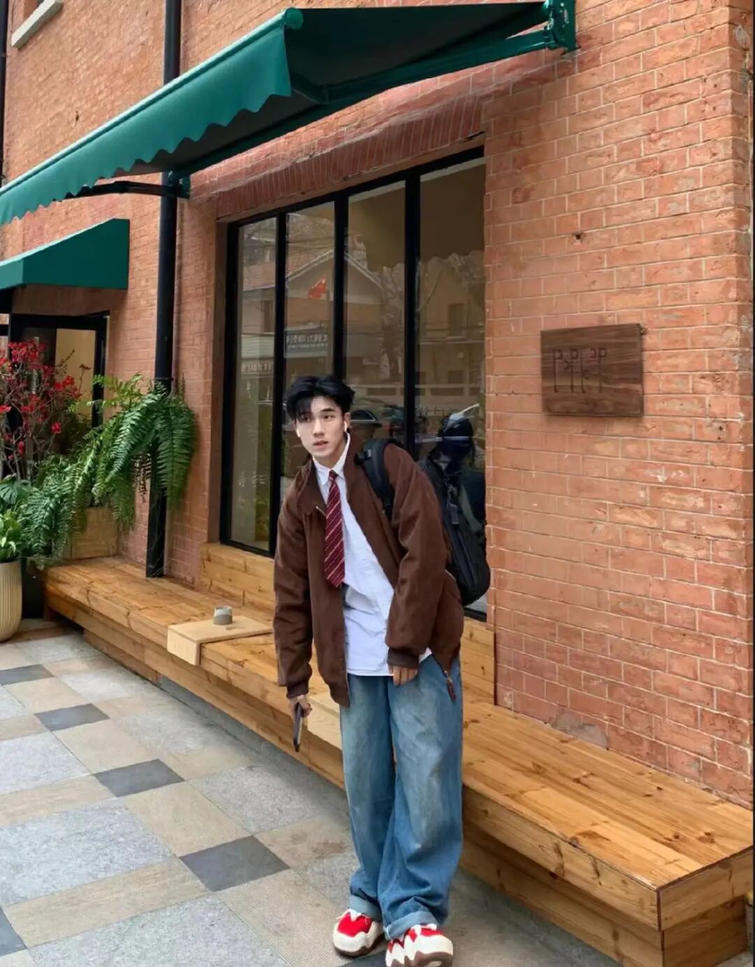 男生可以选择美拉德色系的皮衣或是毛衣,在里面配上浅色内搭可以使整体更加清新醒目,裤子可以选择搭配同色系的工装裤或者做旧牛仔裤,鞋子可以配和上衣同样的颜色进行呼应,也可选择和裤子同一颜色进行视觉上的比例拉长。