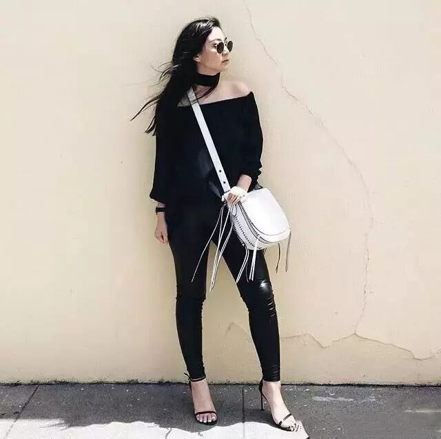 当你在尝试全黑造型的时候适当露肤必不可少~