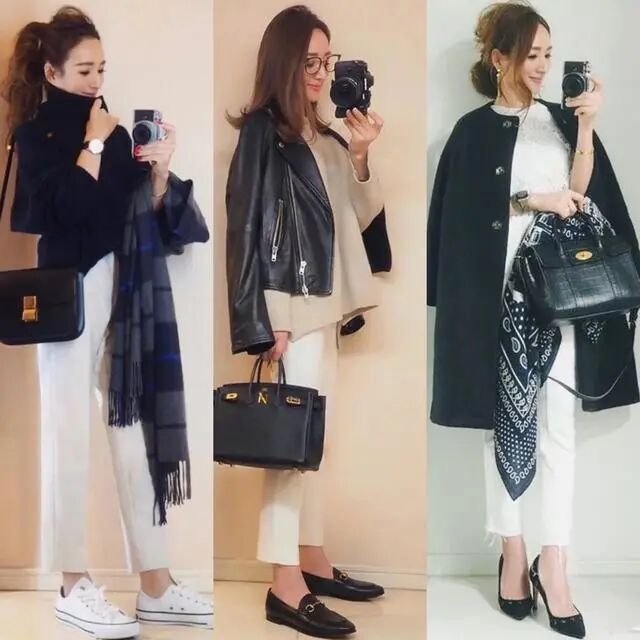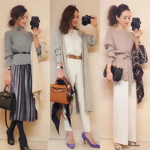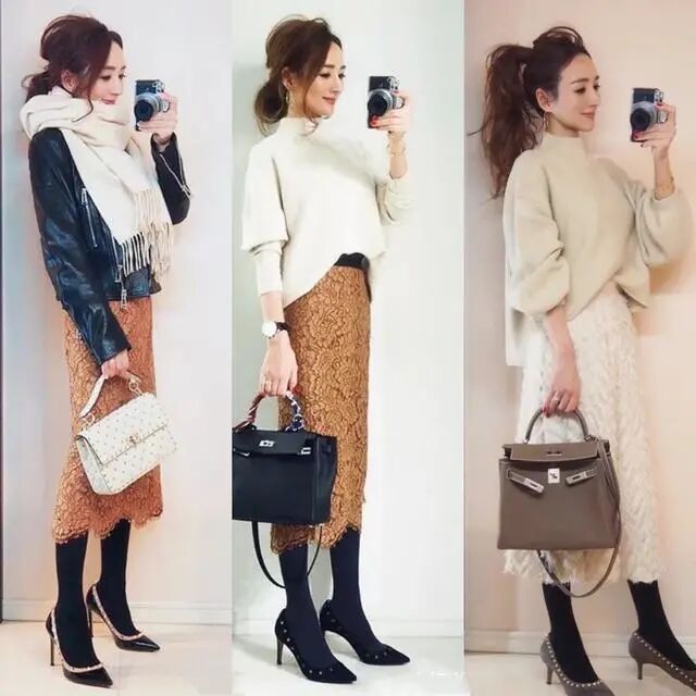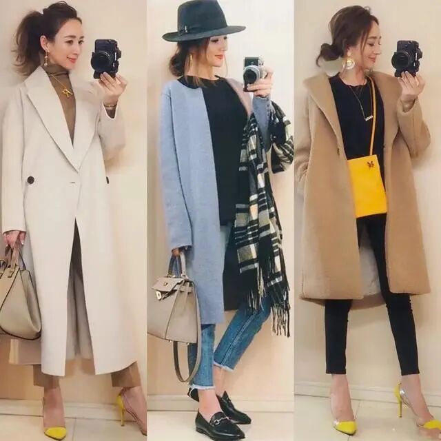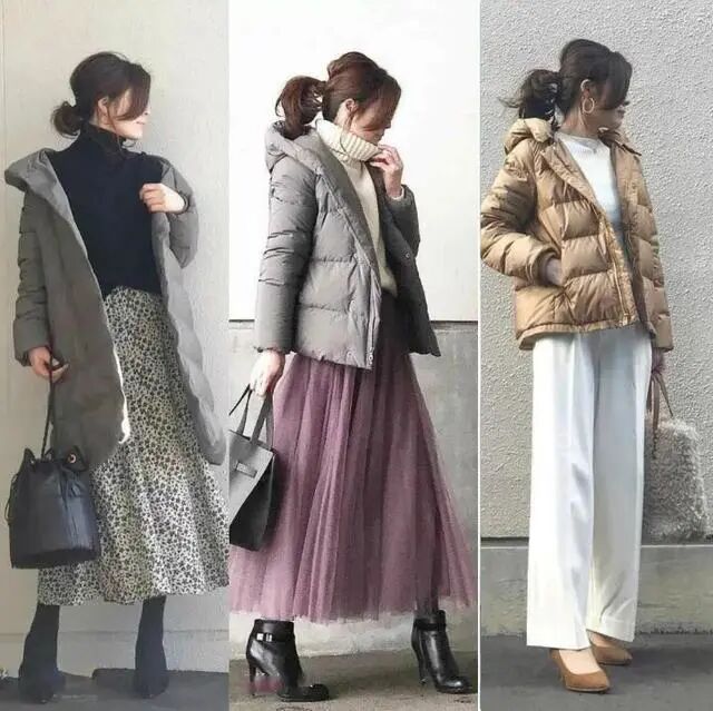 如果你一下子没了穿搭灵感,或许日系通勤风格的搭配会带来一些搭配灵感,风格偏OL风,简约文雅,也都是平时很基本的款式,也容易模仿。大衣+高领毛衣+裤子/裙子