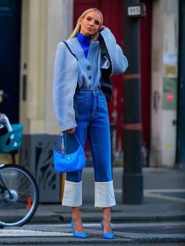 高级感:卫衣+西装+微喇叭裤+老爹鞋