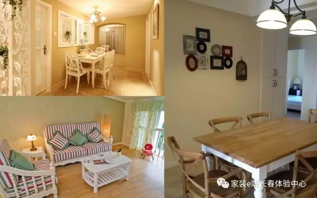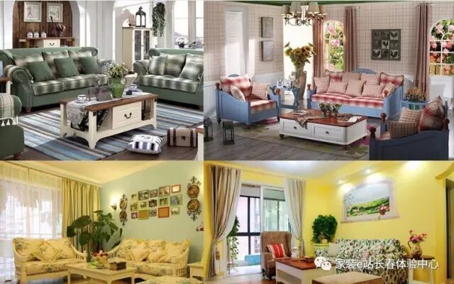 另外还有那种比较常用的全布艺沙发,而这种沙发多没有拐角,以二人及三人为主,图案多以花草为主,颜色均较清雅,配以木制浅纹路茶几。特别注意的是如果屋内的装修比较花哨,那也有人配以纯木制条格椅,刷上白漆,更能体现出田园的自然、和谐。
