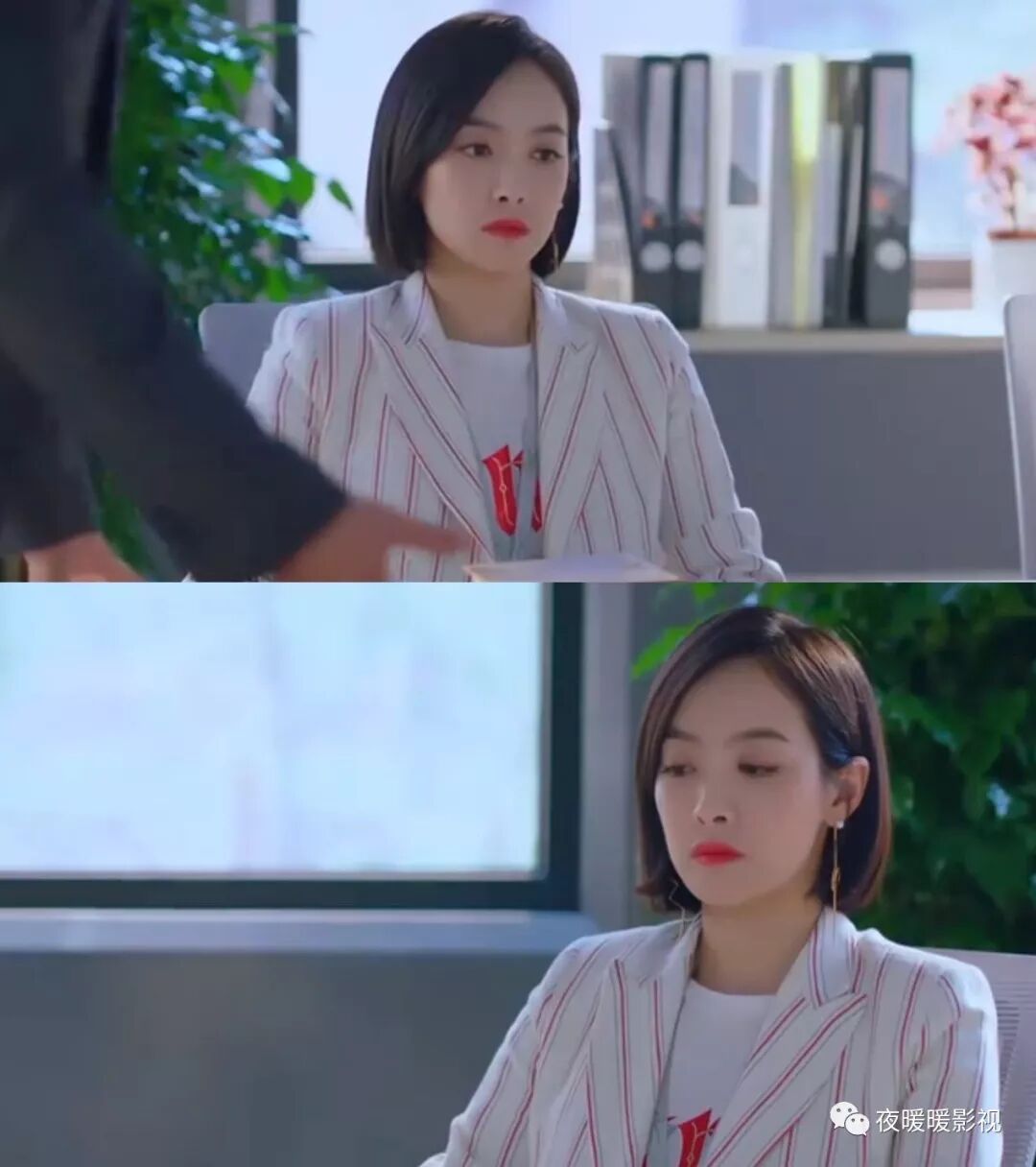 从她身边同事的反应来看,贺繁星在职场上,还是属于严厉能干型上司,这件黑西装和她本人的性格也更加贴合。