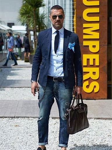 通过对牛仔裤的巧妙搭配,不仅能够展现出职场男士的独立自信,还能彰显其对生活品质的追求。