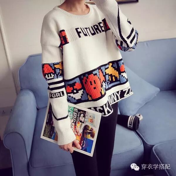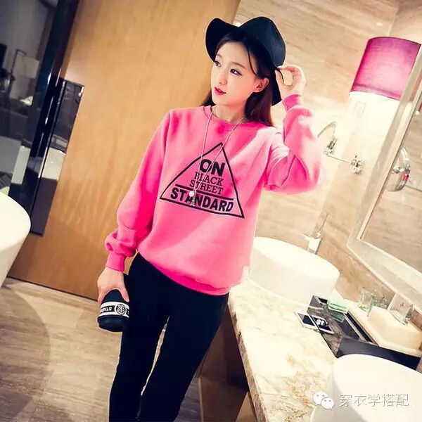 3·双面针织的,柔软厚实,宽松的版型设计也是时下最最流行的,好穿不挑人,蝙蝠袖的,撞色的字母图案设计是最大的亮点,时尚减龄