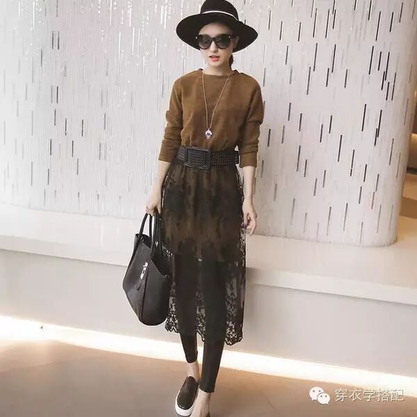 4·韩范儿十足!针织拼接蕾丝面料,版型超赞,松紧收腰设计,显瘦,搭配腰带,效果更好!