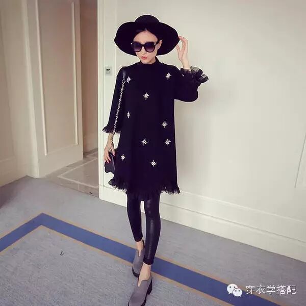 8·气质款!修身显瘦的黑色,点缀温润钉珠,一扫沉闷传统,凸显端庄甜美青春气质,宽松的版型设计,好看又好穿,裙摆的剪裁也很特别,是那种波浪形的,拼接荷叶下摆更是显气质!