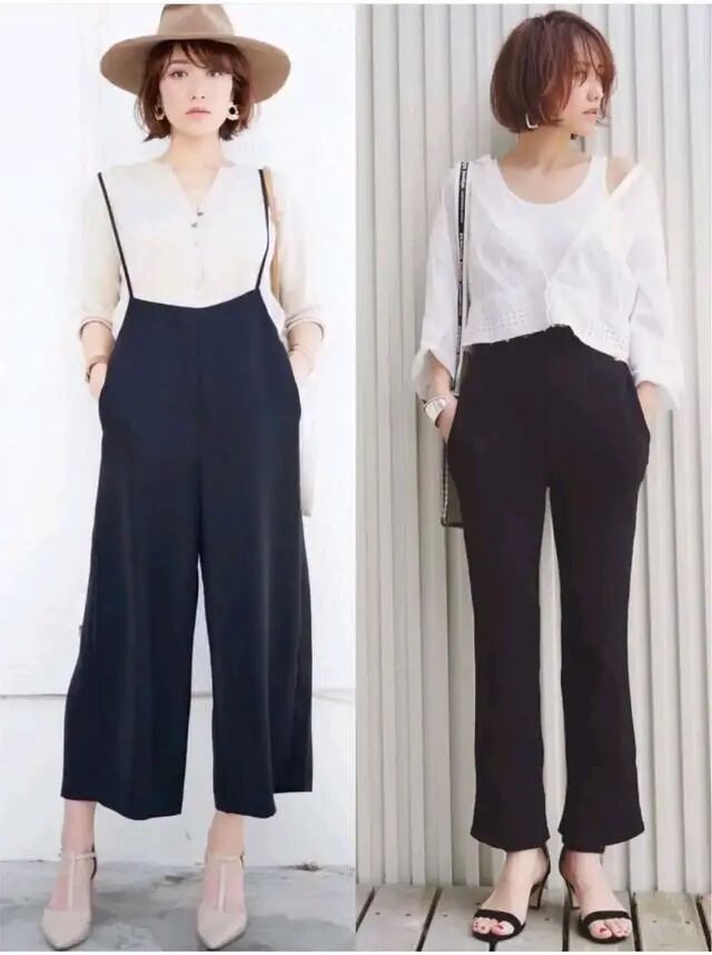 她的穿搭基本上没有很紧身的单品,都是比较宽松款的。比如简约的白色衬衫搭配藏蓝色背带阔腿裤,宽松的阔腿裤可以很好地遮住我们的粗腿大屁股,遮肉显瘦的效果极好,配色也简洁明了,整套的搭配给人的感觉是放松的,随性慵懒的,既符合40岁女人优雅淡定的特质,又显得非常青春。