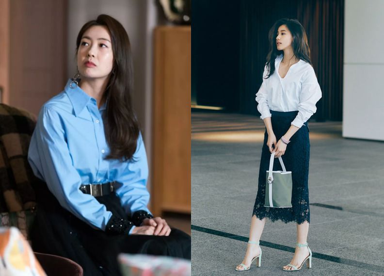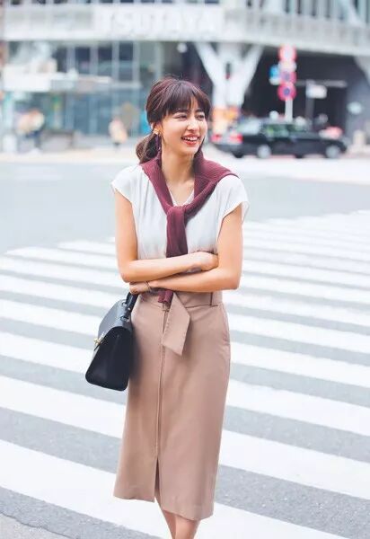 白衬衫在职场穿搭中是必备的单品。搭配半裙特别适合亚洲女性。