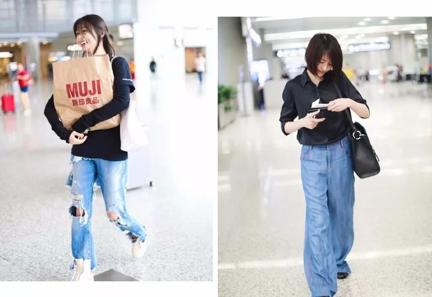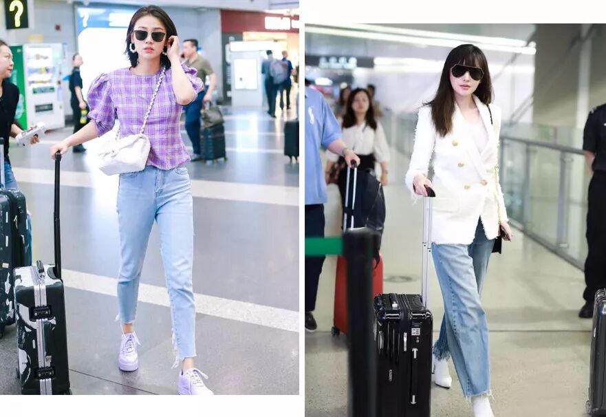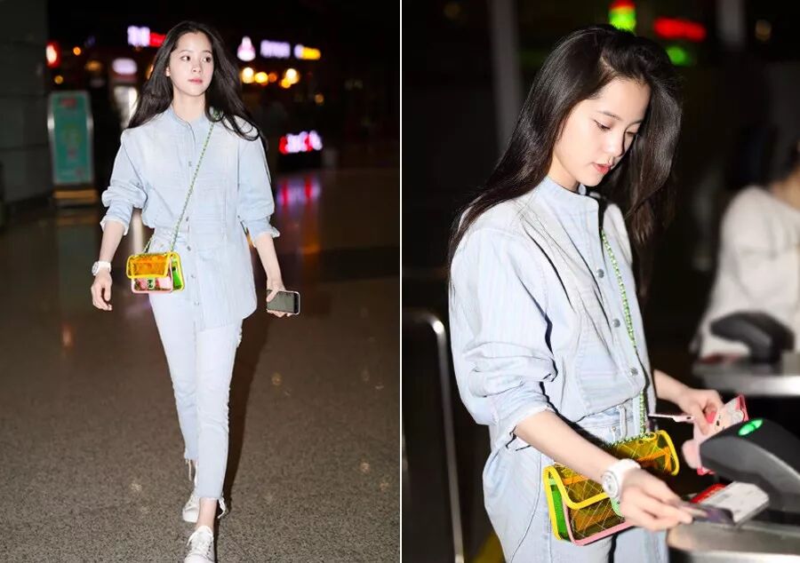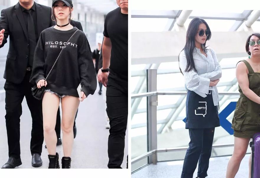 刘诗诗的机场街拍也总是清新得让人很有精神劲儿,好身材展露无疑的那个是许玮宁。