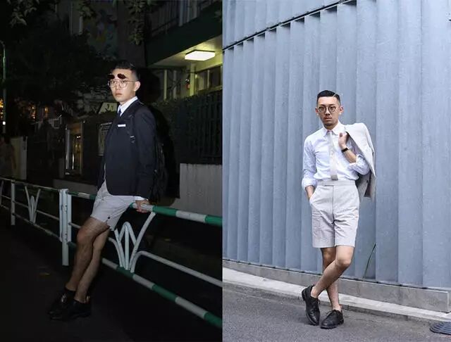 正经八百的西装搭配休闲短裤,营造出不违和的反差感,随性又不随便的雅痞风格。
