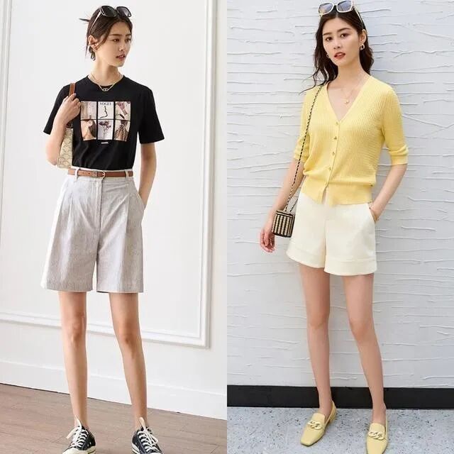 在进行两件单品搭配时,一定要熟练地运用颜色之间的搭配,选择的面料更是要有高级感,夏天的时候选择薄款的衬衫,面料会更合适,有防晒的作用,还很清凉,穿在身上又高级。