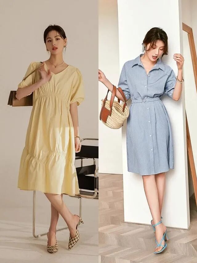 除了两件或者是两件以上单品之间的结合,也可以选择连衣裙或者是半身裙,直接选择连衣裙省去了不少的烦恼,因为能够直接穿好上下身,只要做到颜色不花哨,能够使整体的感觉更加平衡,有一定的休闲感,塑造出较强的轻熟风格就可以了,还不用担心有色彩搭配的冲突。