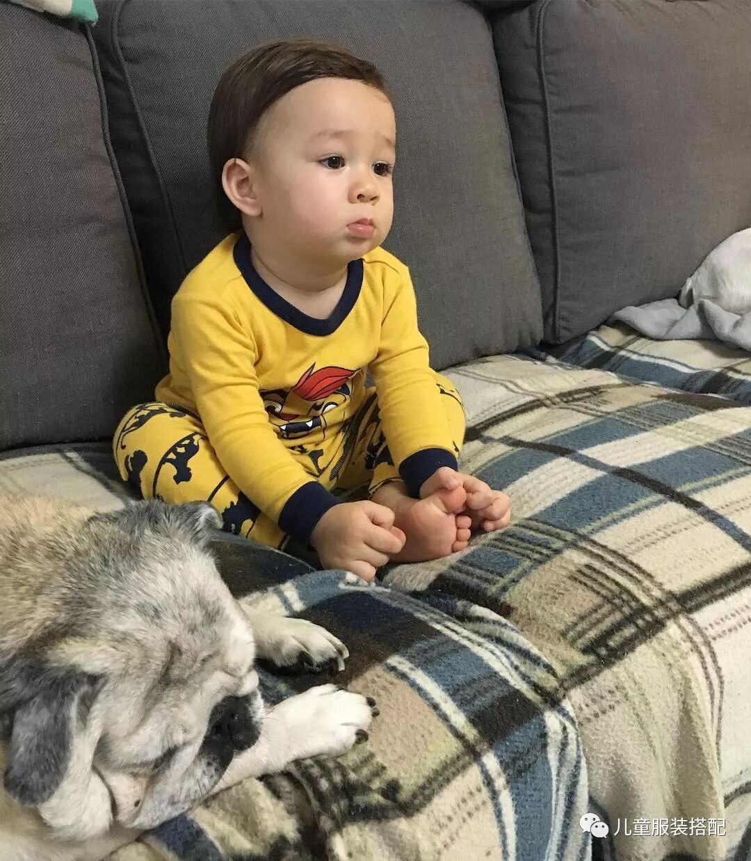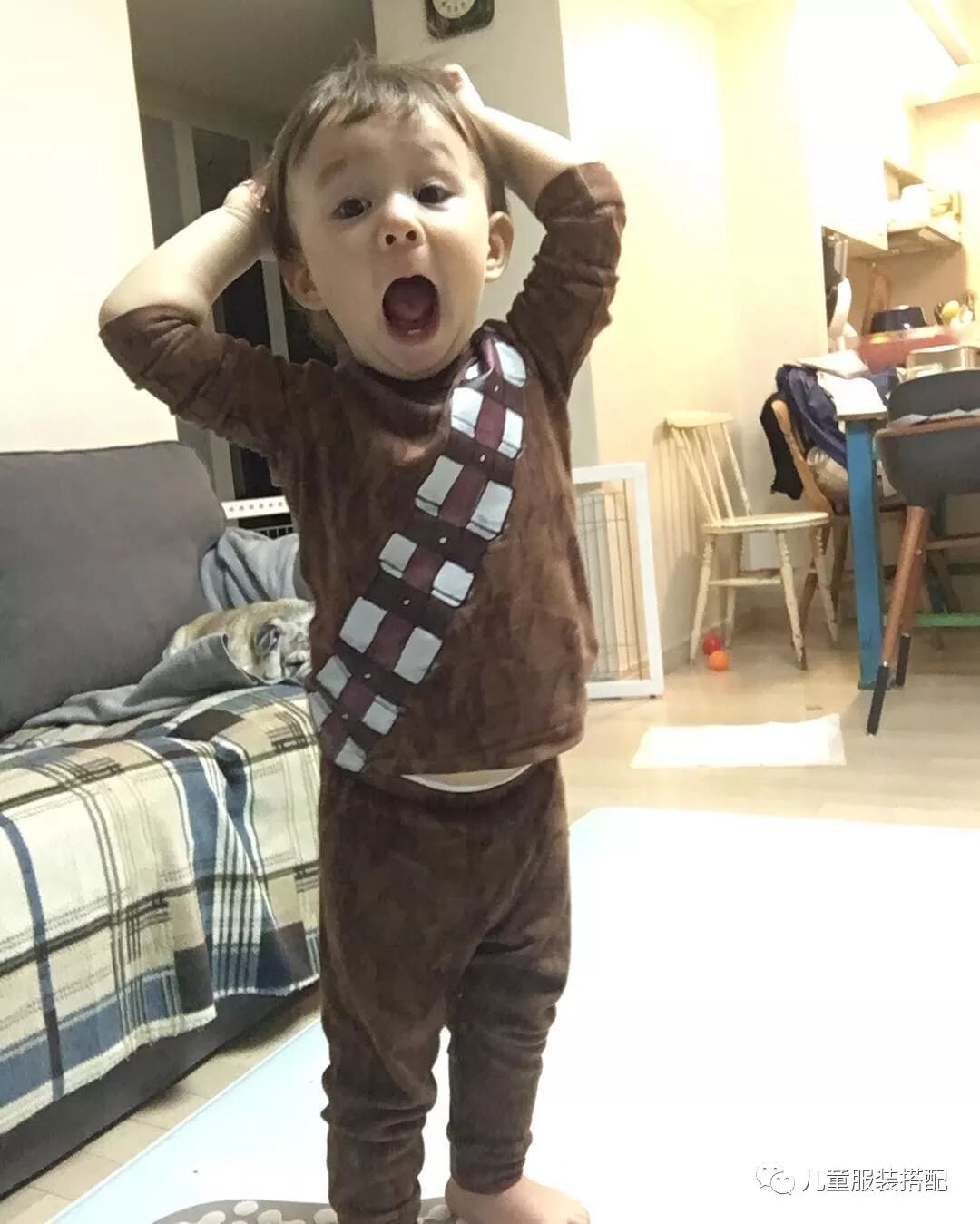 家居服穿的如何,最能体现小宝贝的时尚功底,小kevin这身咖色的家居服,绝对是够时尚,料子是绒绒的,穿上肯定很舒服~