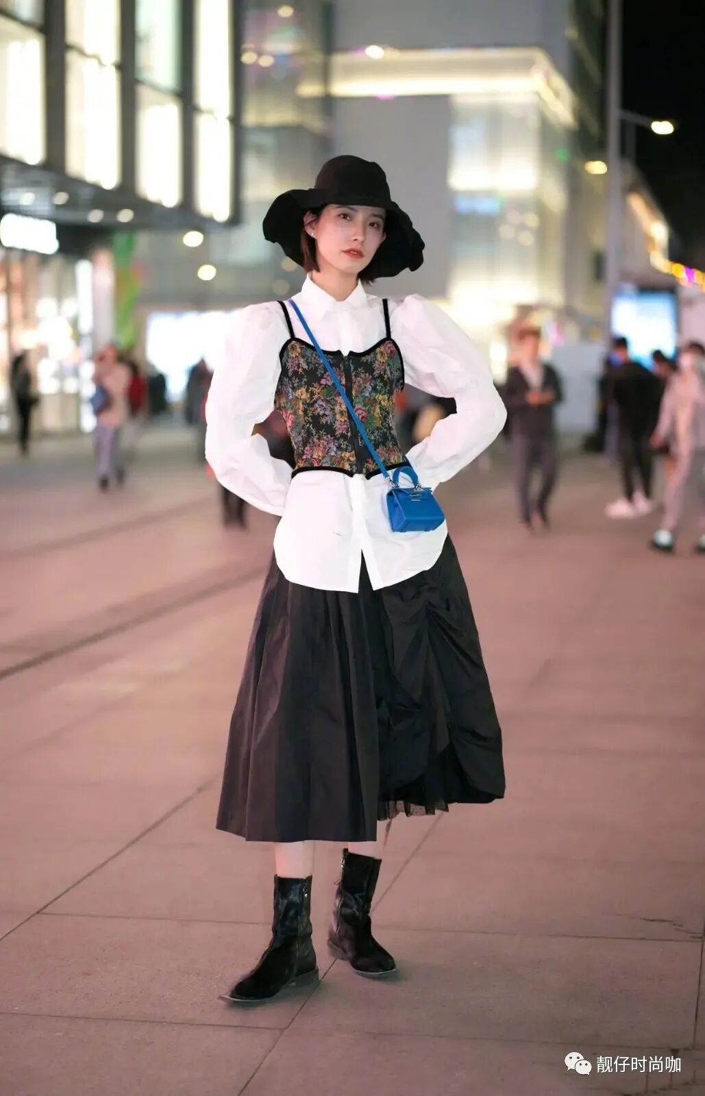 叠穿是目前比较流行的一种方式,黑色的半身裙,搭配上白色泡泡袖衬衣,这样的穿搭多少是有点烂大街和枯燥了。
