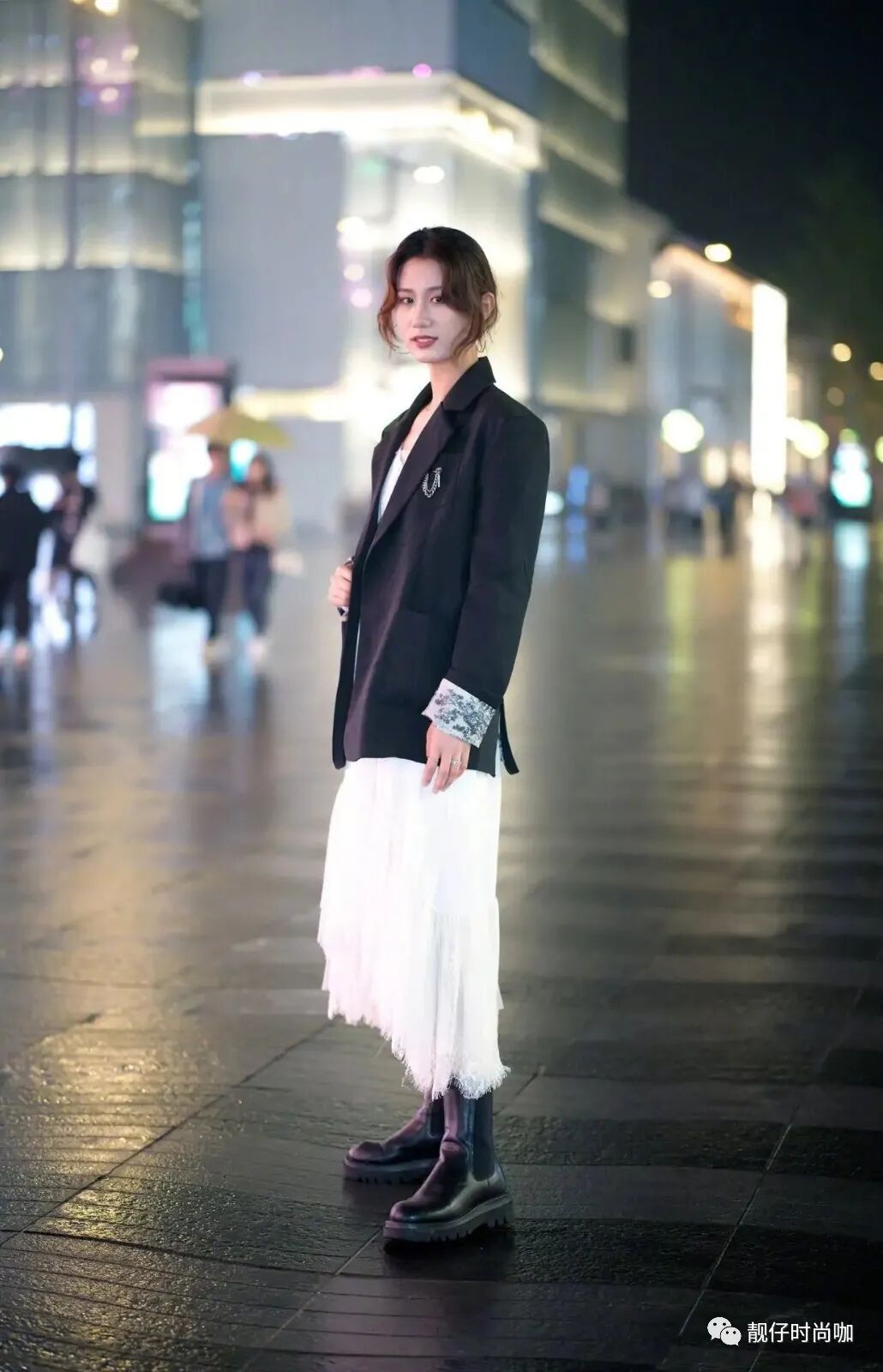 小西装是很多女生的心头爱,选择裁剪适合自身体型和风格的,里面搭配一条长裙,再搭配上一双短靴,妥妥的气质美女。