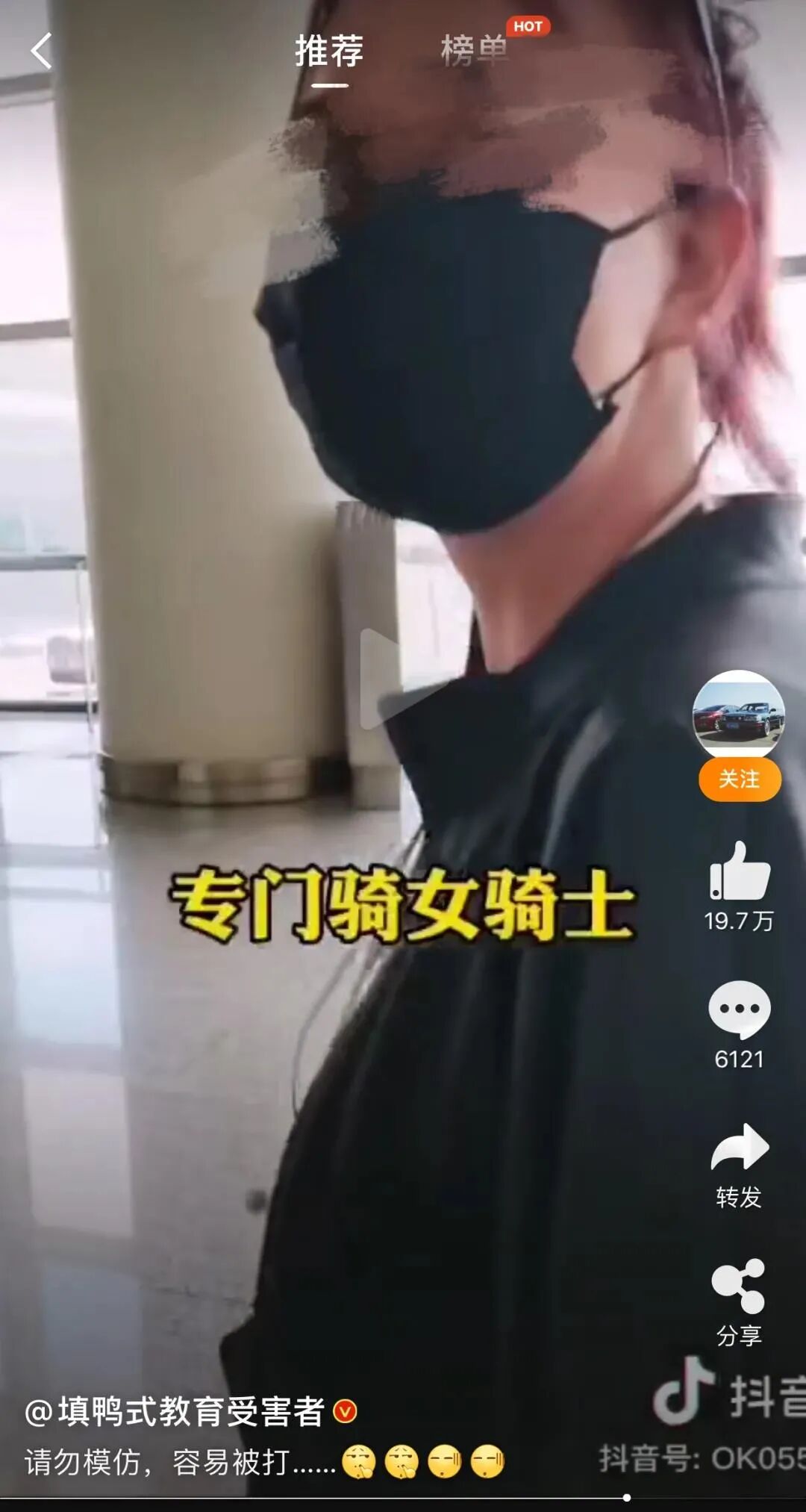 在女骑士居多的某音,微博上出现了这样的一段恶臭的摆拍视频。