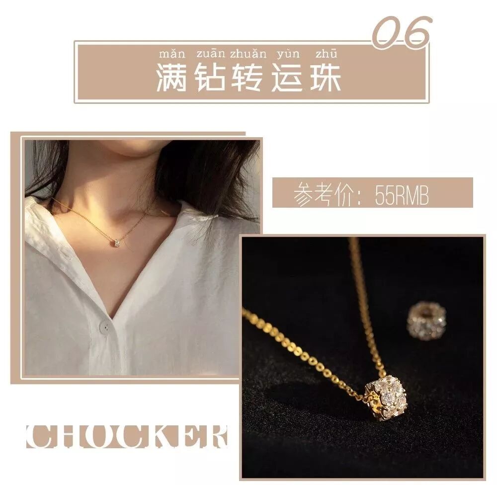 精致小巧的项链,镶满了水钻。转运珠顾名思义转运,戴上它说不定你的运气会变好哦~