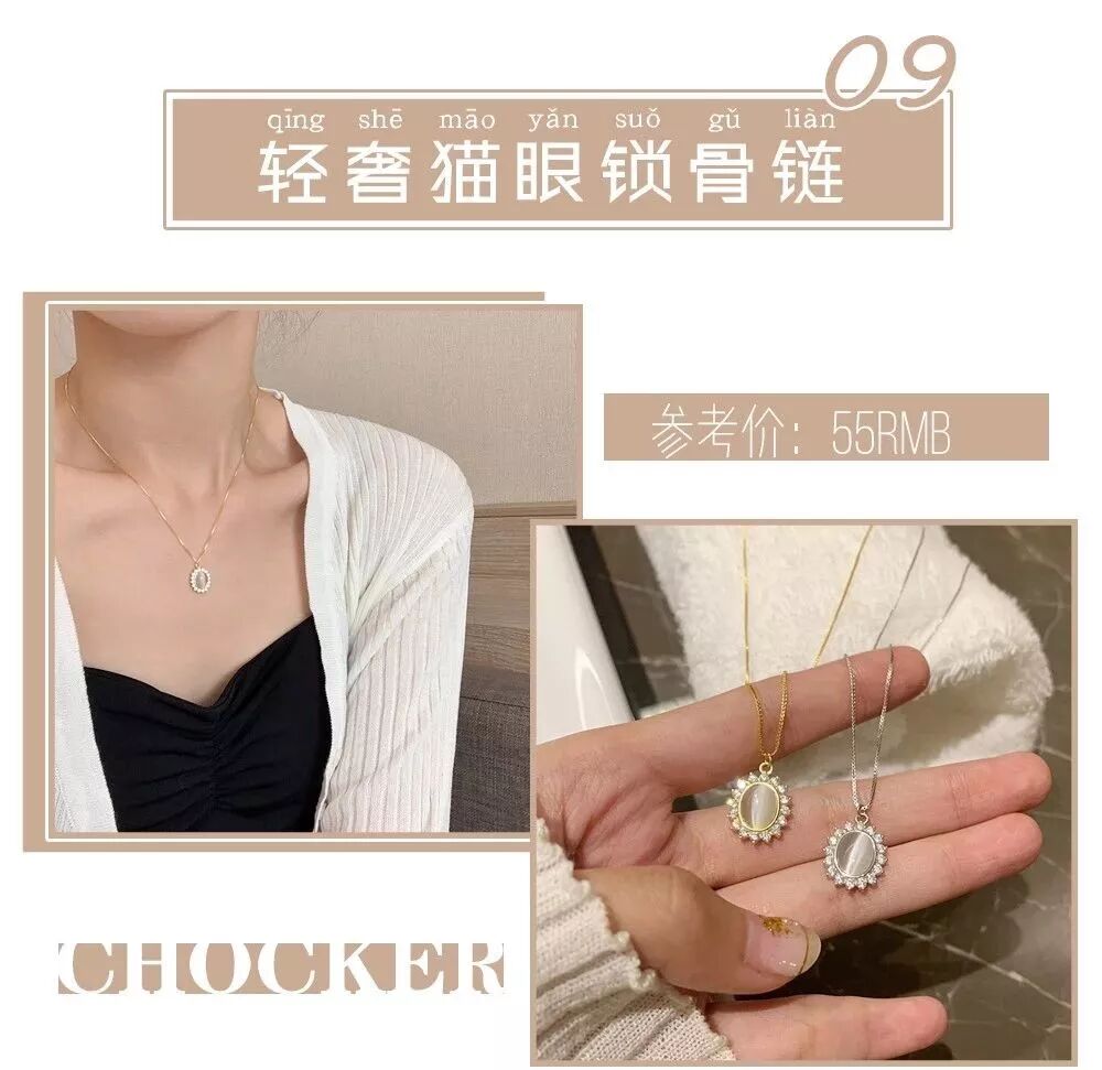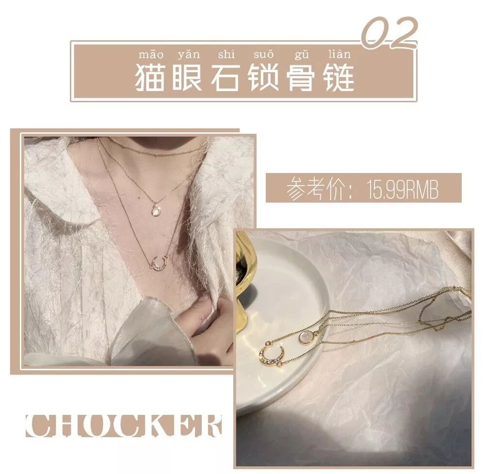 猫眼石锁骨链,自带光泽感,还有那种空灵的感觉,典雅高贵,不管是金色还是银色都十分好看。