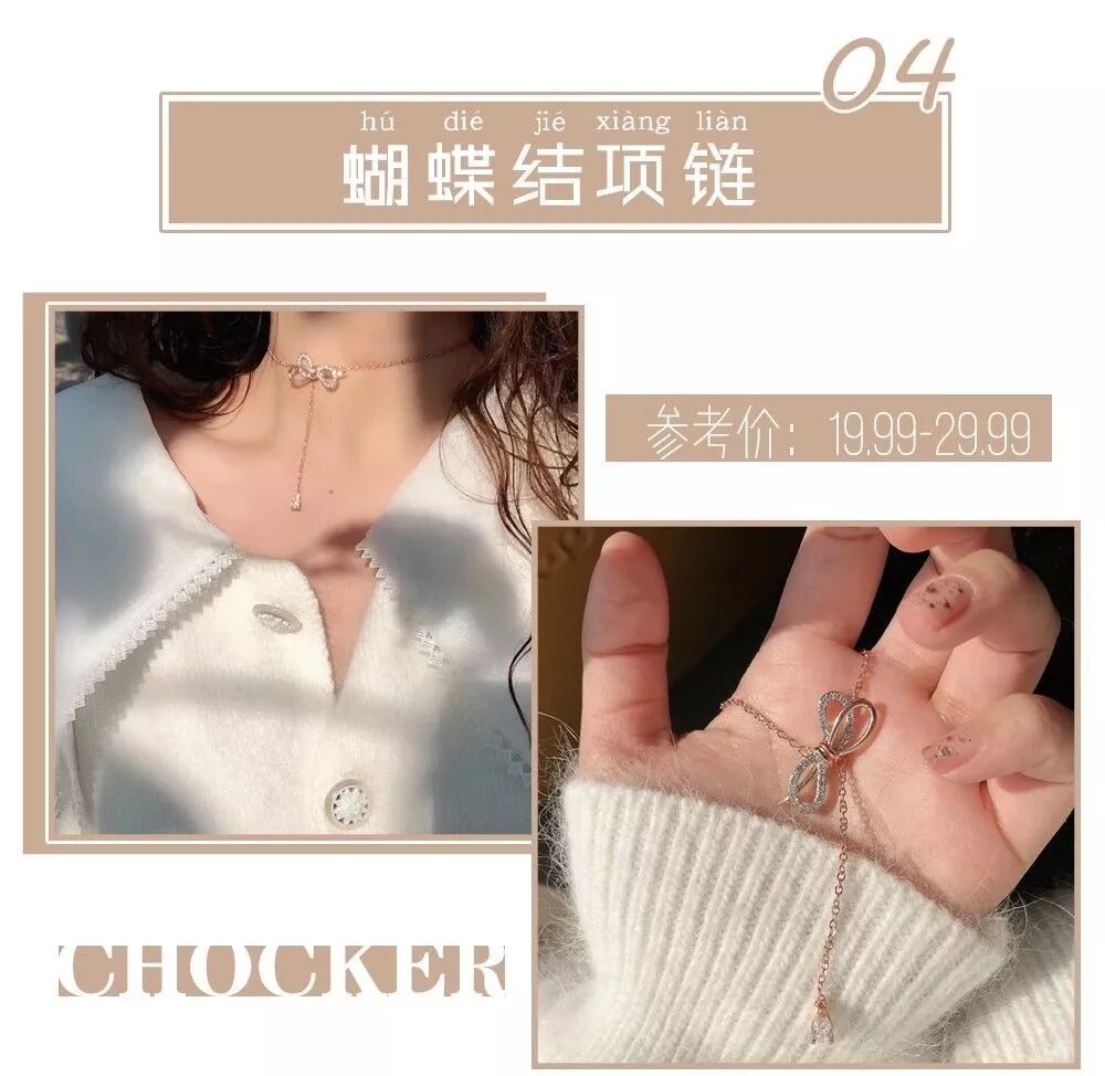 今年很流行的奢华洛世奇同款蝴蝶结项链,光是看着就赏心悦目,谁戴谁温柔。