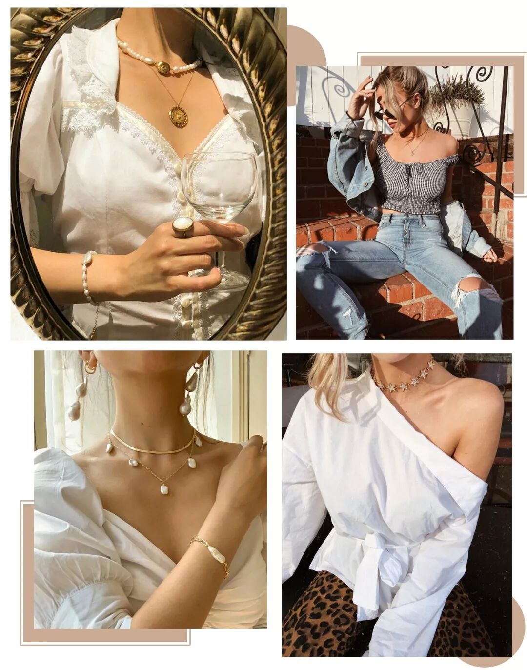 小小的珍珠项链,特别适合搭配宫廷风的衣服,把别人对你的注意力转移到了项链上。