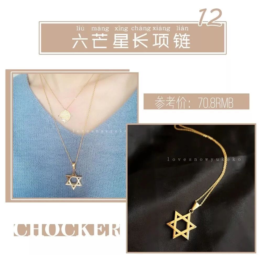 金色六芒星项链,双面高抛光,正反面都超有质感。存在感刚刚好,可以作为毛衣链。