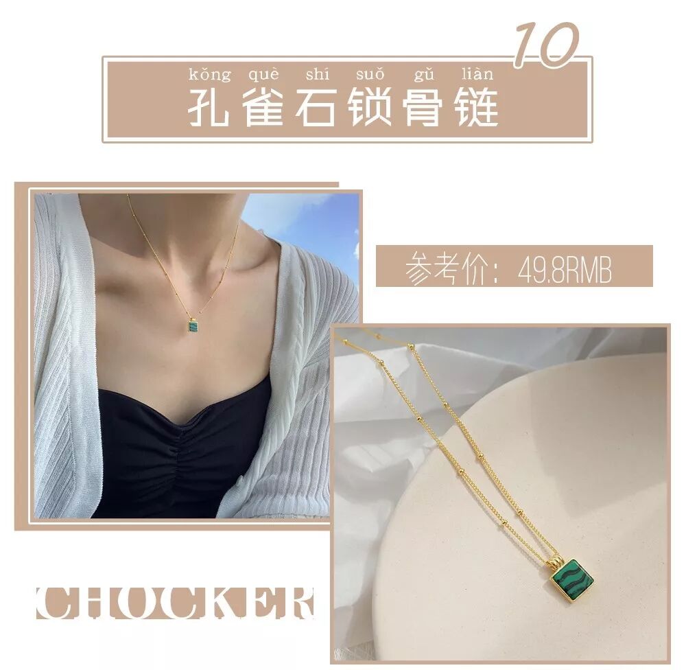 叠戴款锁骨链,比较适合领子低一点的衣服,戴起来会十分性感。注意,一定要选择比较素雅的衣服,否则会很杂乱哦。