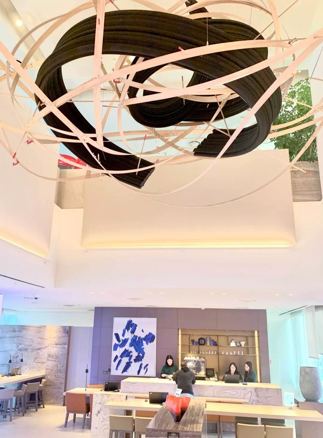 酒店大堂有可供欣赏的油画,据说这幅画叫《对话》,出自艺术家吴受焕之手,笔触自由挥洒既蕴含东方书法又有西方抽象风格,放在前台很有视觉冲击力。