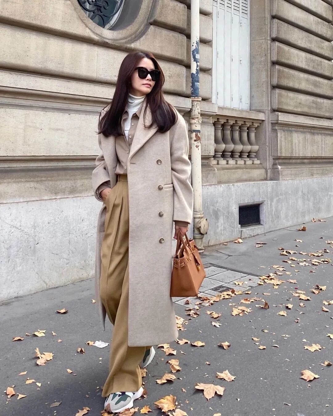 老爹鞋与阔腿裤是十分日常又不挑人的搭配组合;自带休闲感的阔腿裤,大方利落,配上一对老爹鞋,不仅没有厚重感,反而衬得腿部线条纤细修长,轻松营造出休闲感。再搭配一件长款大衣,又美又飒,走路带风。老爹鞋+牛仔裤