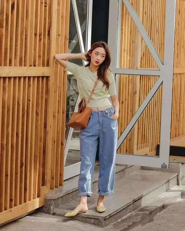 Tips:高腰+九分裤腿+尖头鞋子,是一组显高王炸搭配,穿起来轻松拥有一米七的大长腿。