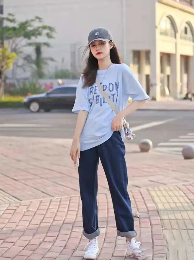 Tips:帆布鞋的颜色选择可以借鉴上衣和发带的颜色,避免整体搭配中只有鞋子单独一个颜色。