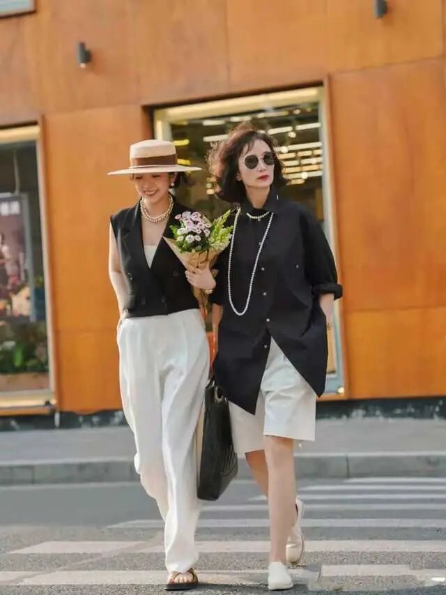 裤子与鞋子向来是绝配,一双合适的鞋子与贴合双腿的裤子能够很好地优化双腿的曲线,显得人更加高挑纤瘦。对于中年女人来说,最适合她们的裤子莫过于阔腿裤,版型宽松、裤管笔直流畅,穿起来既遮肉又修饰腿型,不装嫩不显老还气质。