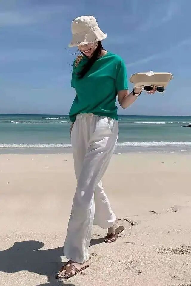 八月穿搭!女人过了40岁,尽量少露“脚脖子”!阔腿裤+平底鞋,优雅又时髦