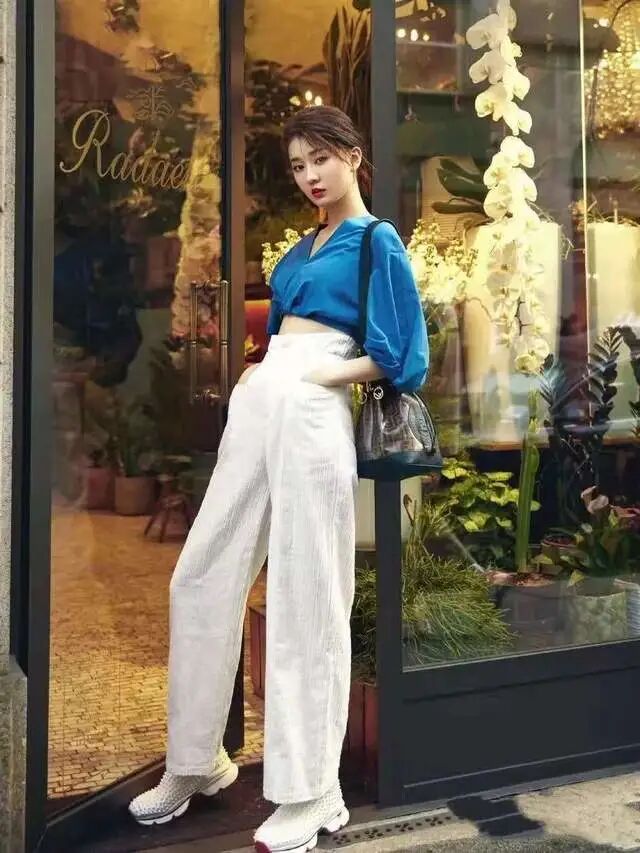 拖地阔腿裤在长度上做了加法,在宽度上就要做减法,所以大家在选拖地阔腿裤时一方面要注意它的材质,面料垂感越好越能穿出飘逸感,另一方面也要注意裤腿的松紧度,与腿部肌肤有一拳距离为好,穿起来不会拖拉,也可以很好的避免臃肿。