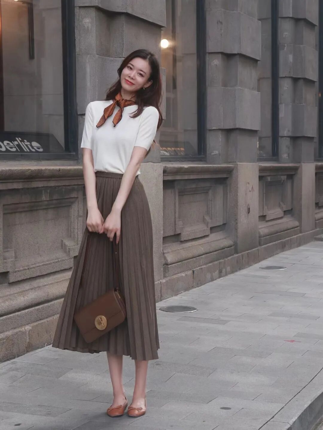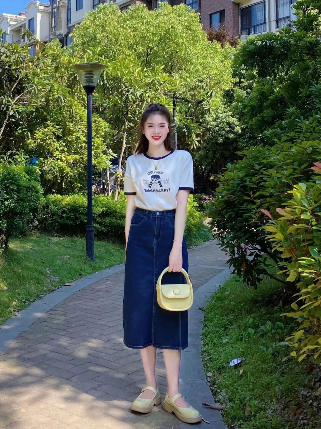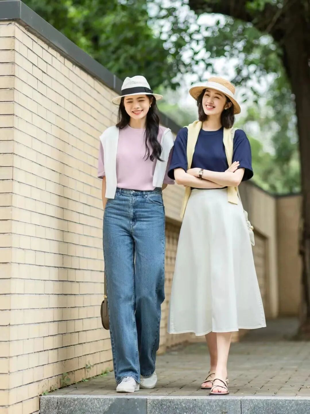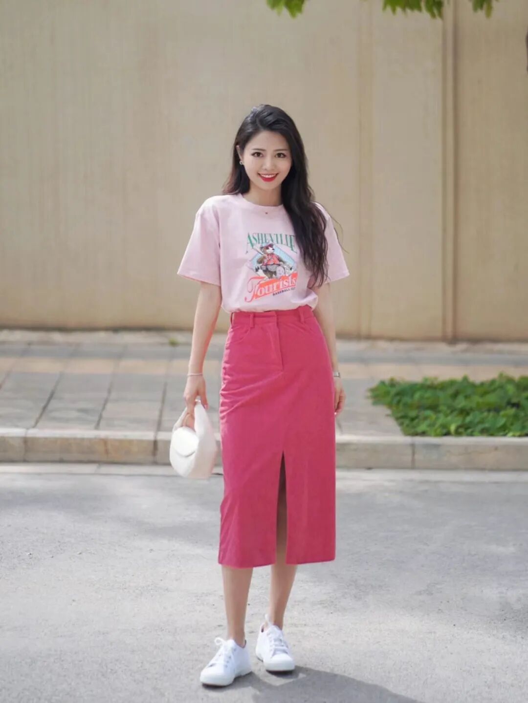 说完了有关于T恤的种类,那么该怎么搭配让T恤大放异彩,便成为了我们需要考虑的事情。事实上,T恤+半裙,会是我们在初夏时节不错的一个稳妥选择。▼五、T恤+裤子