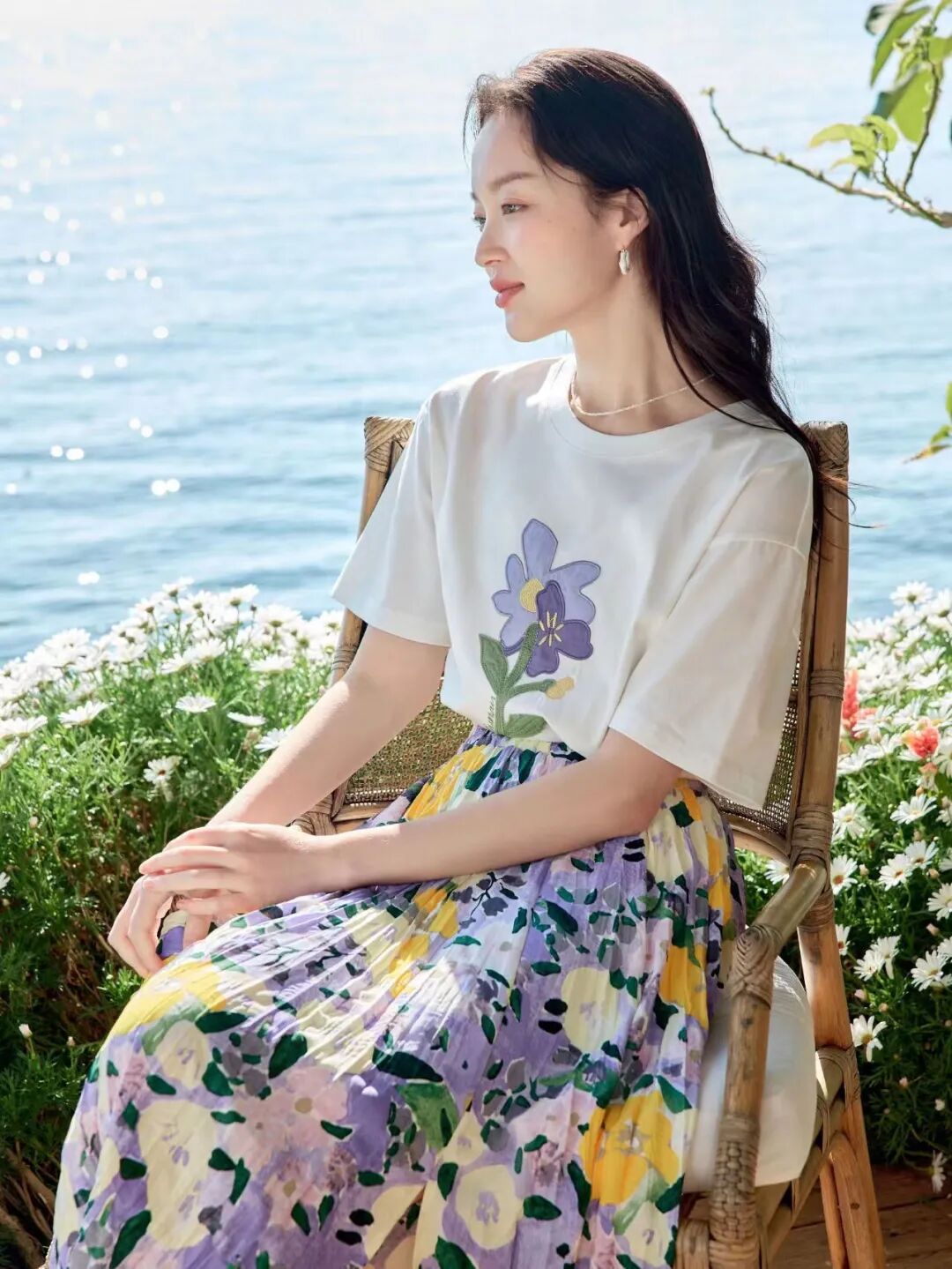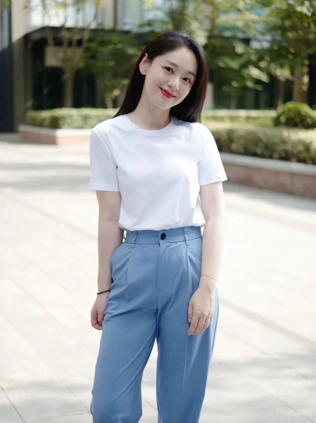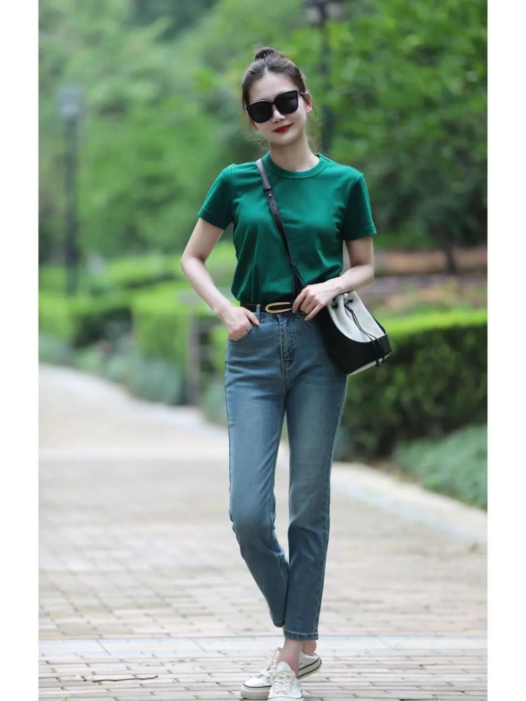 初夏的高级感,是纯色T恤给的,它就好比一张白纸,没有任何色彩,而关于裤子的选择,就如同西子一般,淡妆浓抹总相宜。如果资金有限,那么我会毫不犹豫地选择纯色T恤,因为它的基础百搭很值得这份选择。▼二、印花T恤