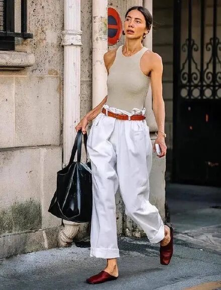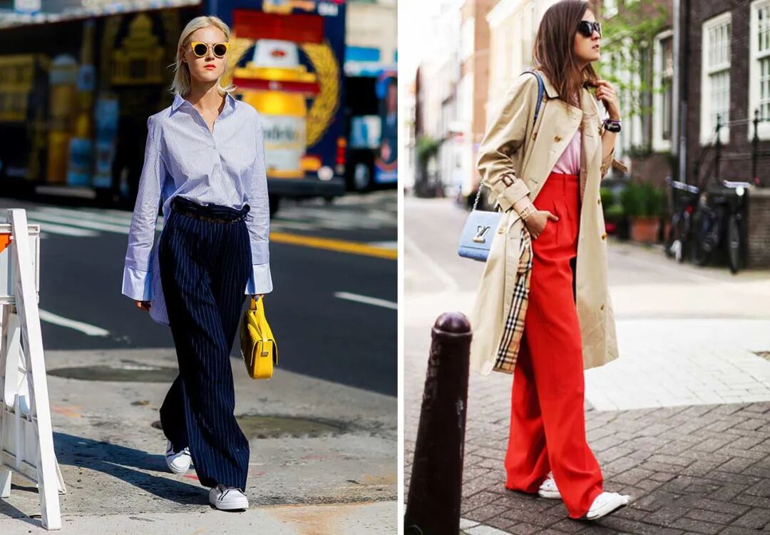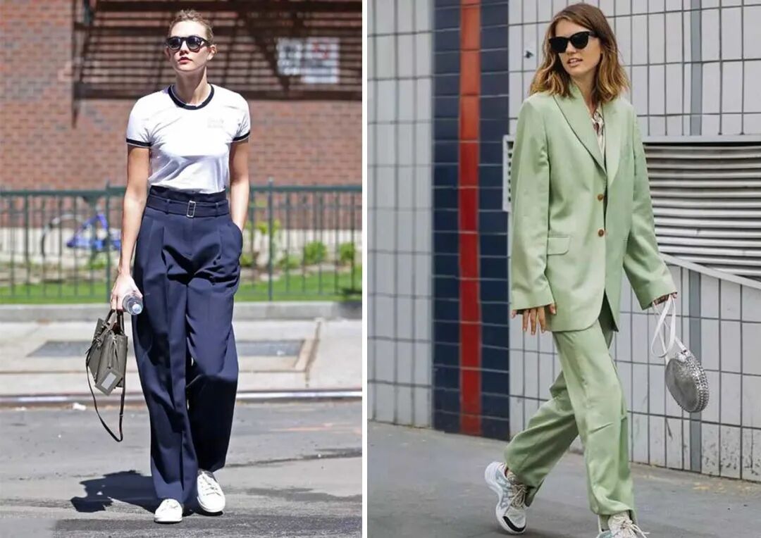 以舒适和百搭为关键的搭配来选择鞋款,同样是结合鞋款高度来体现。有舒适感又能体现百搭的特性,像日常所见的小白鞋、帆布鞋老爹鞋这些都是穿出舒适感和百搭的关键,但是迎合阔腿裤百搭的特性和显瘦效果,以下这些细节也请大家不要忽略。