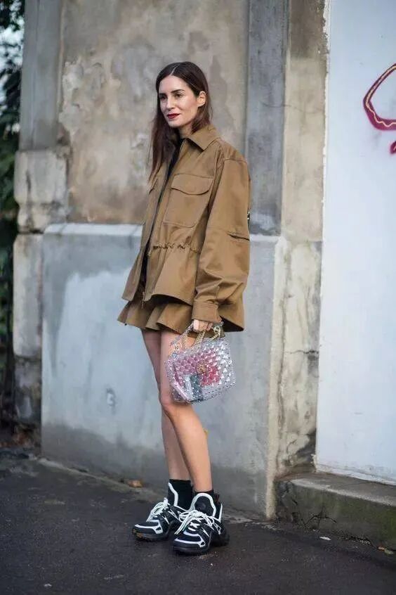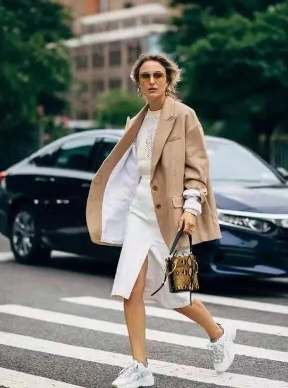 这种搭配法对于喜欢运动鞋的女士来说更是福音,仅是改变了些许运动鞋的形态,就能让造型潮流感加倍!
