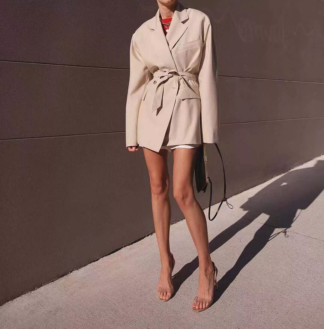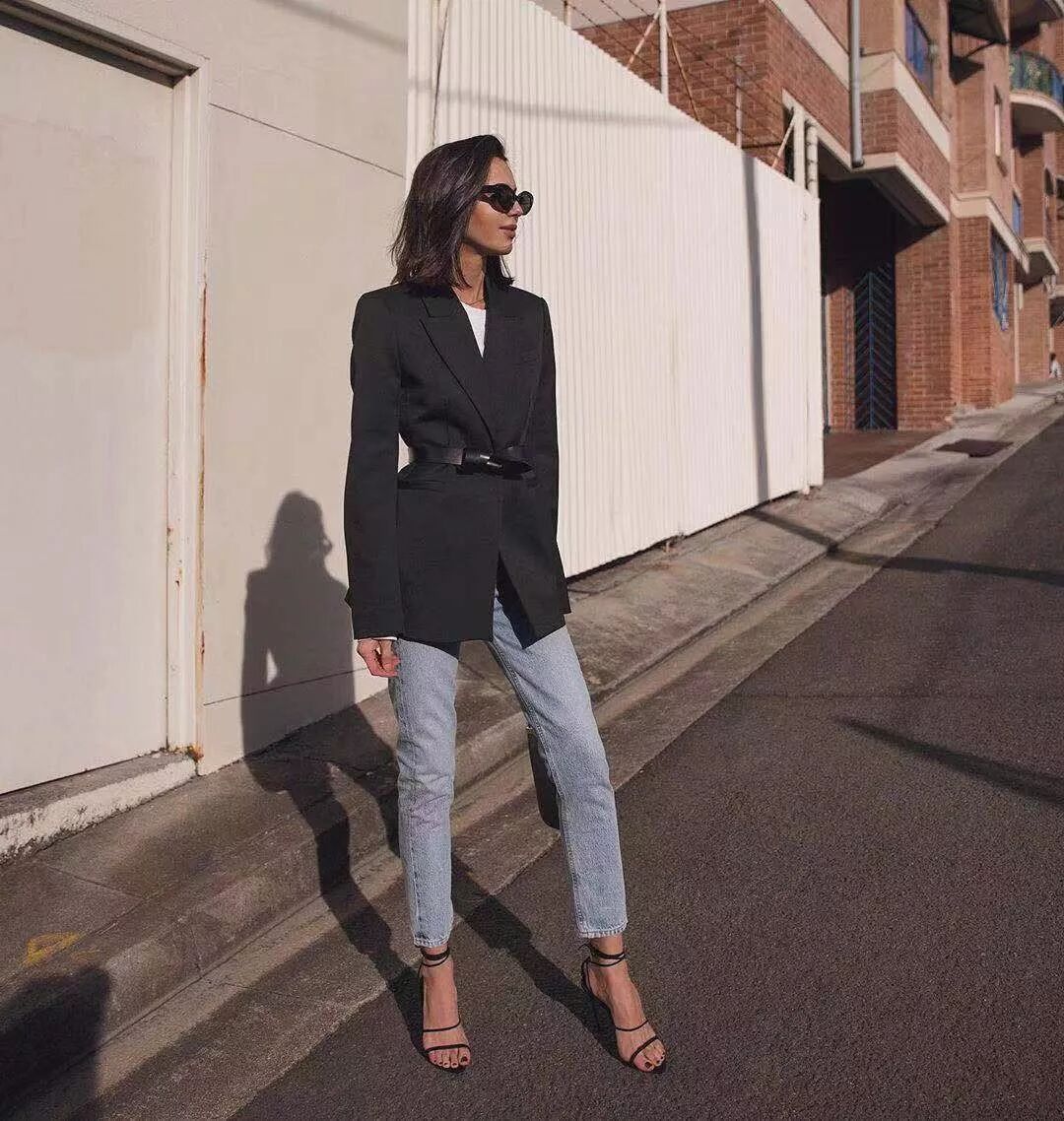 时尚博主PETRA很喜欢这样穿,腰带系出A4腰。我个人非常喜欢,但必须要搭配细跟高跟鞋才能有10m气场全开。