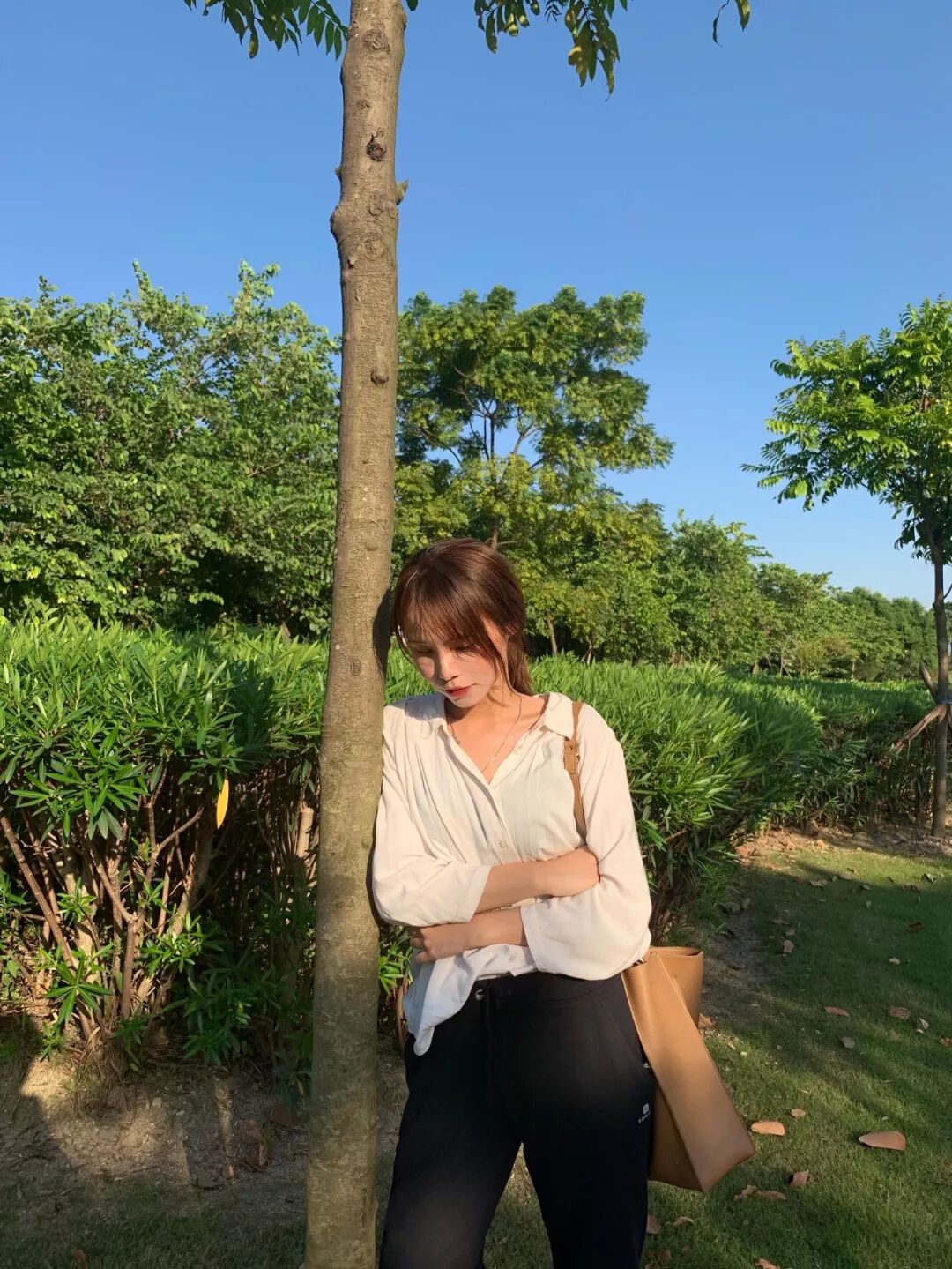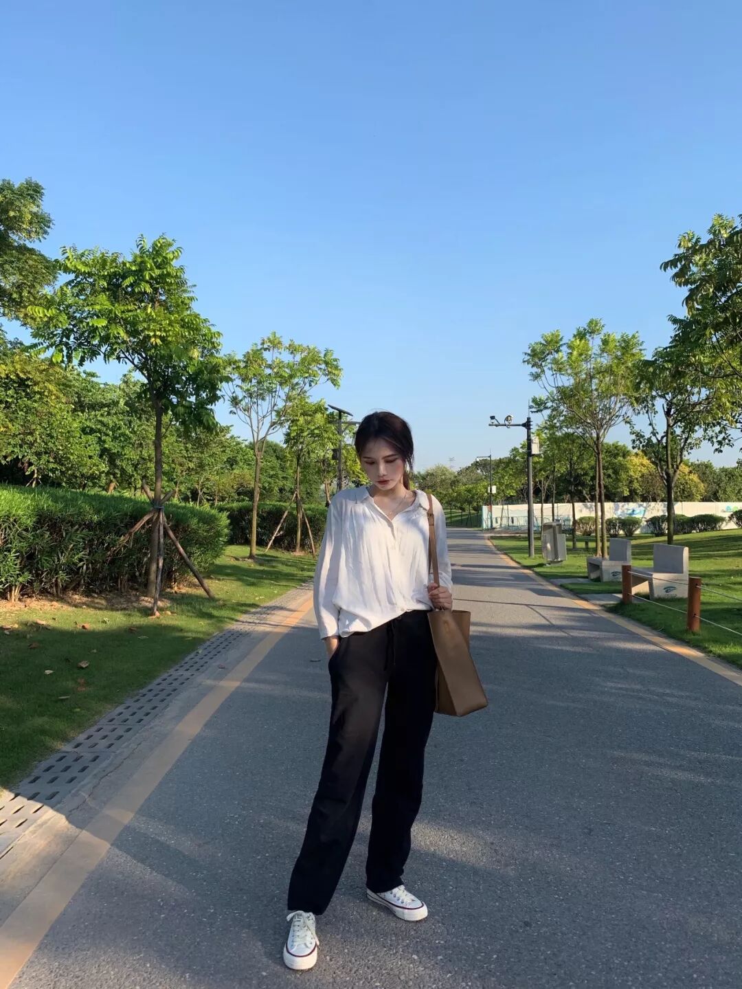 关于黑+白是一个万能搭配,很多伙伴觉得肤色太黑就不穿白色。其实白色是非常显白气质的颜色。穿上白色就好像随身带了一个反光板,随时随地为你打光。白色是我最喜欢的一个颜色之一,像这样的白衬衫更是我最喜欢的单品之一。