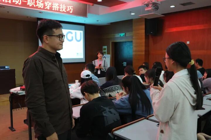 桑乔的讲解清晰明了,内容生动有趣、条理清晰,以趣味的例子将着装穿搭的方法和技巧讲解的通俗易懂,将同学们的注意力紧紧的吸引在讲堂之上。