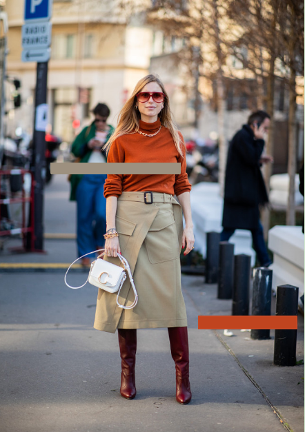 半高领的设计在秋冬季节可以说是十分的防风又保暖了,一穿上就会散发出温柔的气息,十分的有气质。选择宽松的高领针织衫搭配相对紧身的半裙,打造出上松下紧的既视感,适当的把针织衫扎一部分进裙子里面,可以很好的显示出腰线,从而达到显高的效果。扎稍稍偏离正中位置的针织衫会更显时髦,不要扎太多,一点点就可以了。